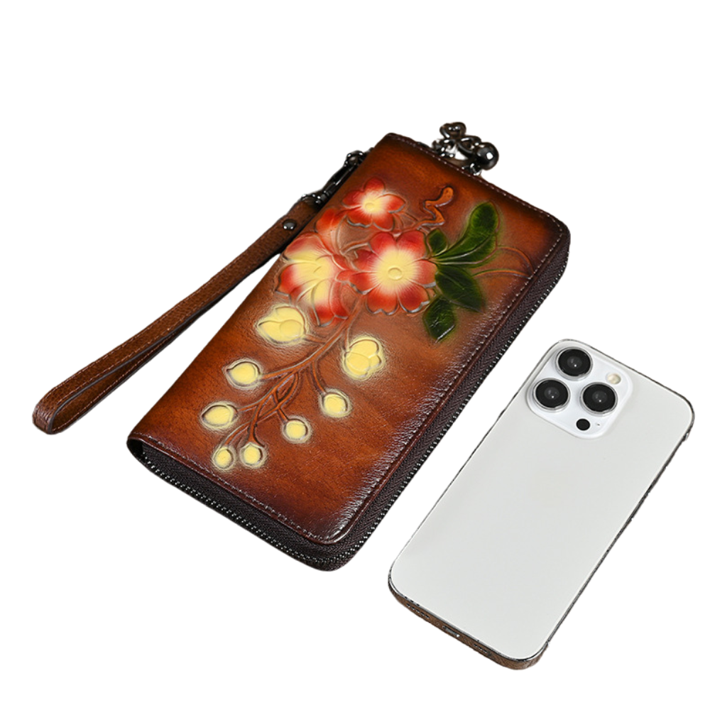 Le portefeuille Étoile en cuir véritable séduit par son motif floral délicat et sa conception pratique. Alliant finesse artisanale et organisation soignée, il accueille cartes, billets et téléphone avec élégance naturelle.