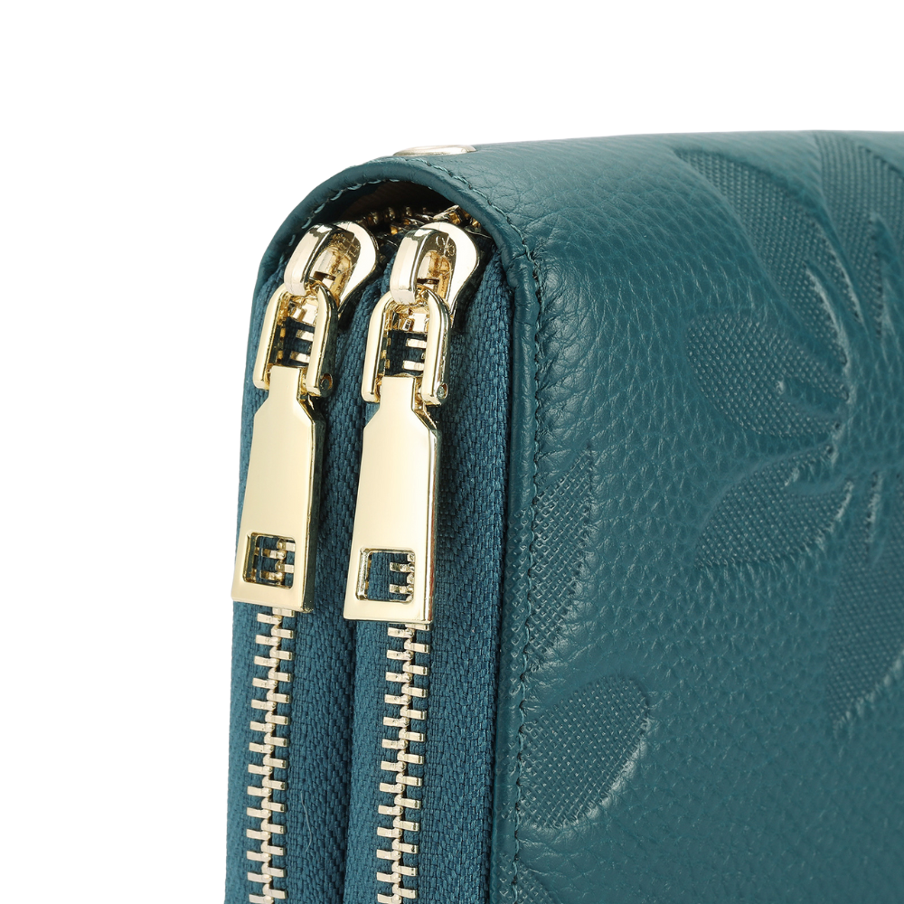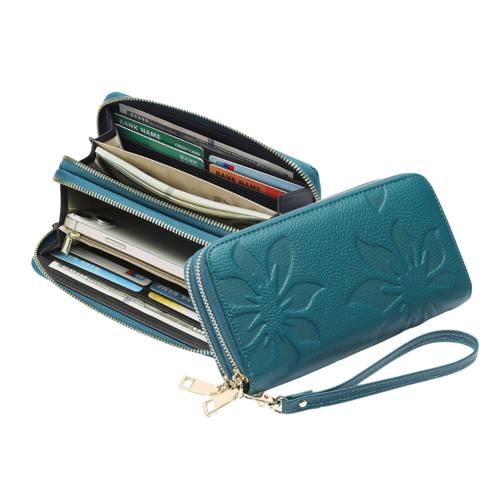 Le portefeuille Fleur associe cuir véritable, douceur et praticité. Ses motifs floraux embossés et ses compartiments bien pensés en font un accessoire raffiné et fonctionnel, idéal au quotidien.