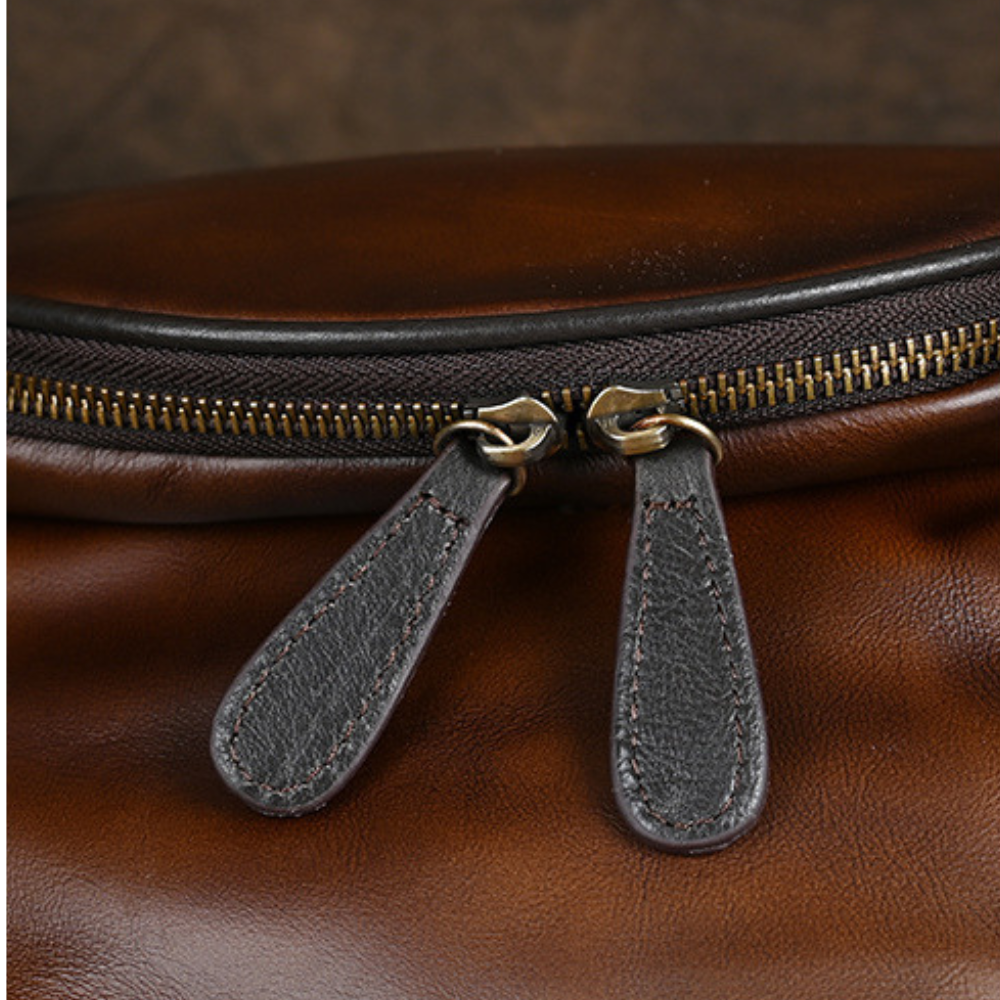 Fermeture métallique et cuir travaillé avec soin, le sac Nostalgie traverse le temps avec style et solidité.