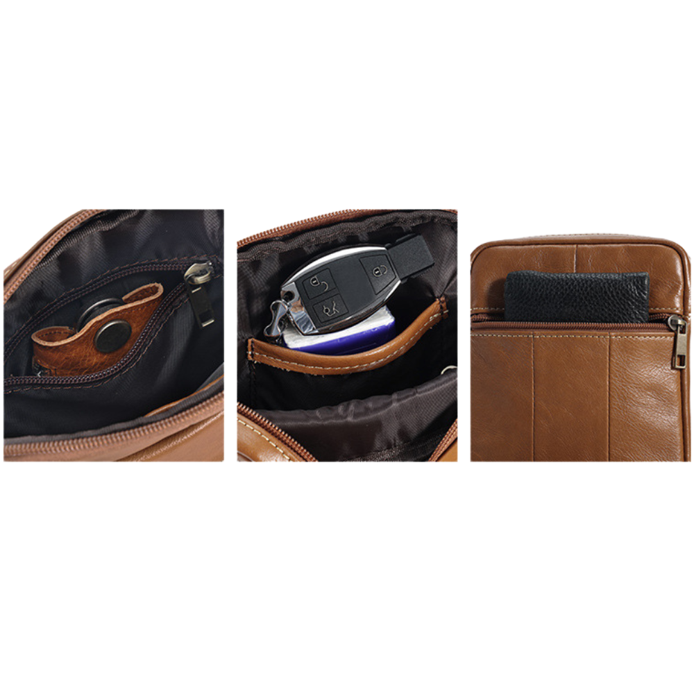 En cuir véritable et lignes épurées, la sacoche Classe associe sobriété et fonctionnalité. L’alliée essentielle du quotidien masculin.